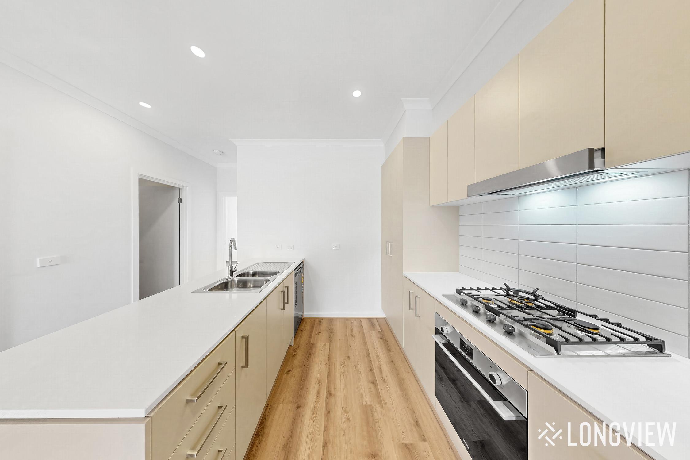 - Modern kitchen complete with stainless steel appliances, dishwasher, and ample cupboard space.