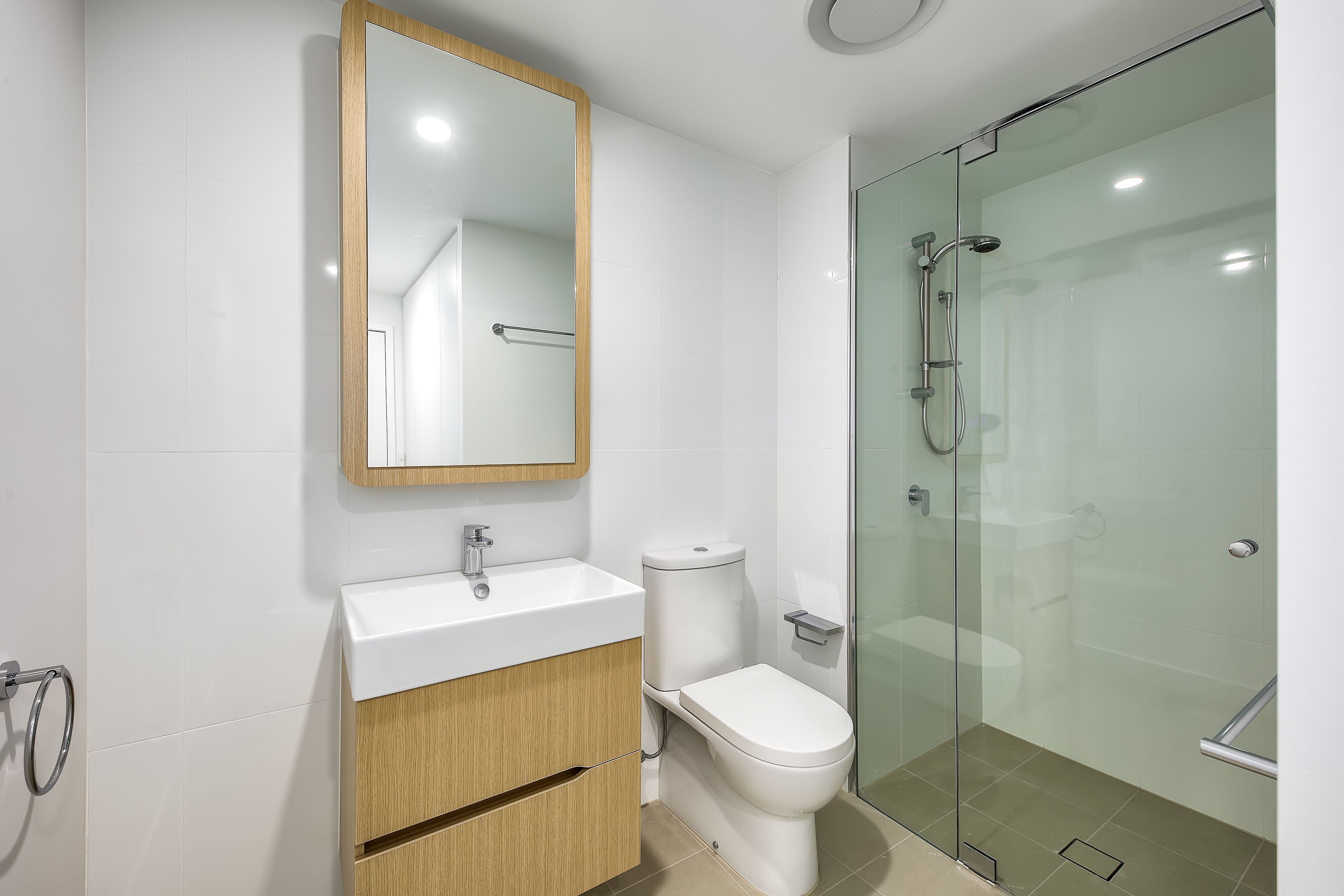- Spacious clean bathroom with combined laundry in hideaway cupboard