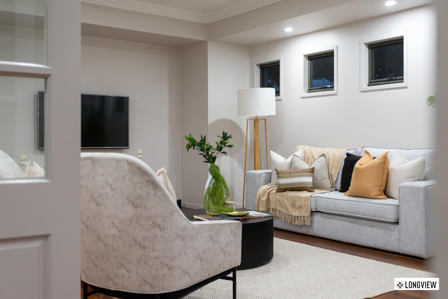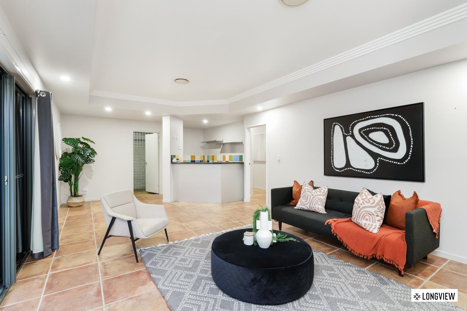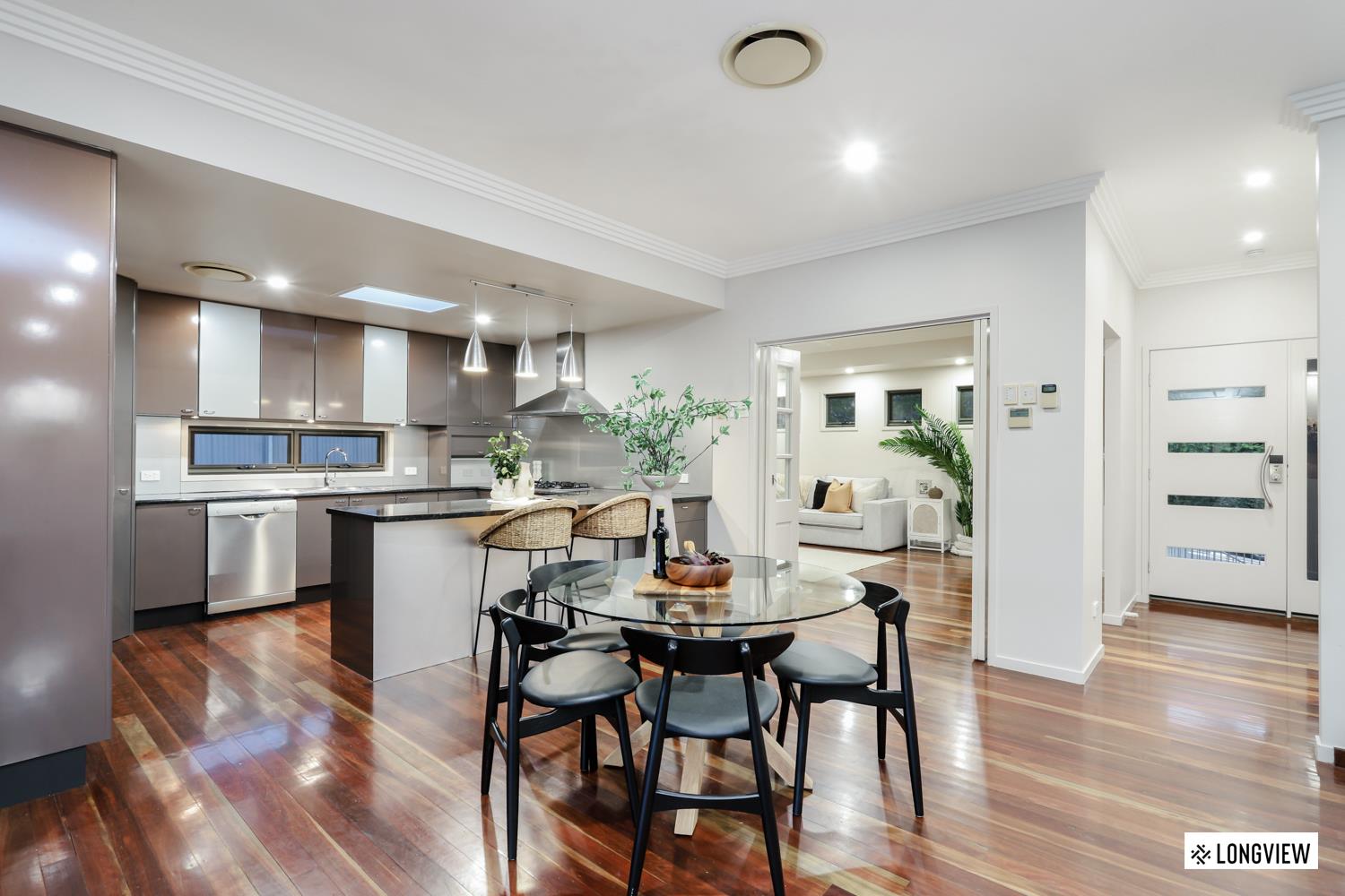 - Spacious living area with spotted gum hardwood floors