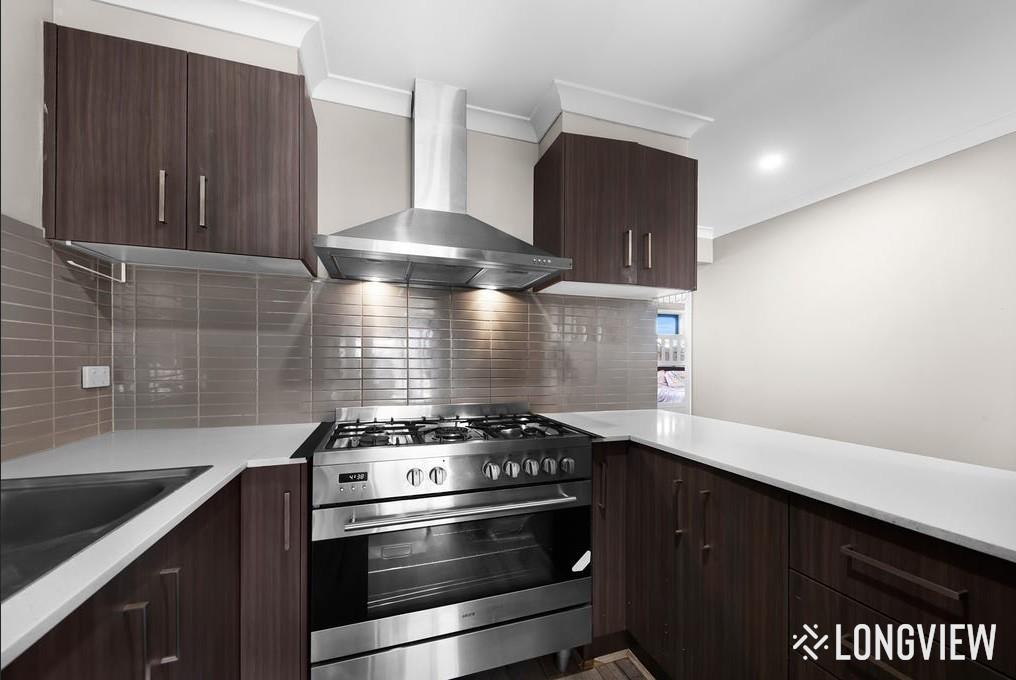 - Kitchen with 900mm gas cook top, dishwasher and double sink