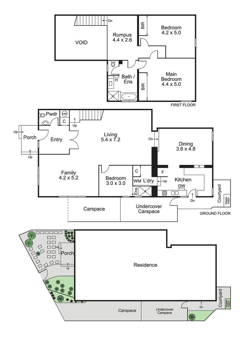 - Livingroom and family room zones, with upstairs rumpus room