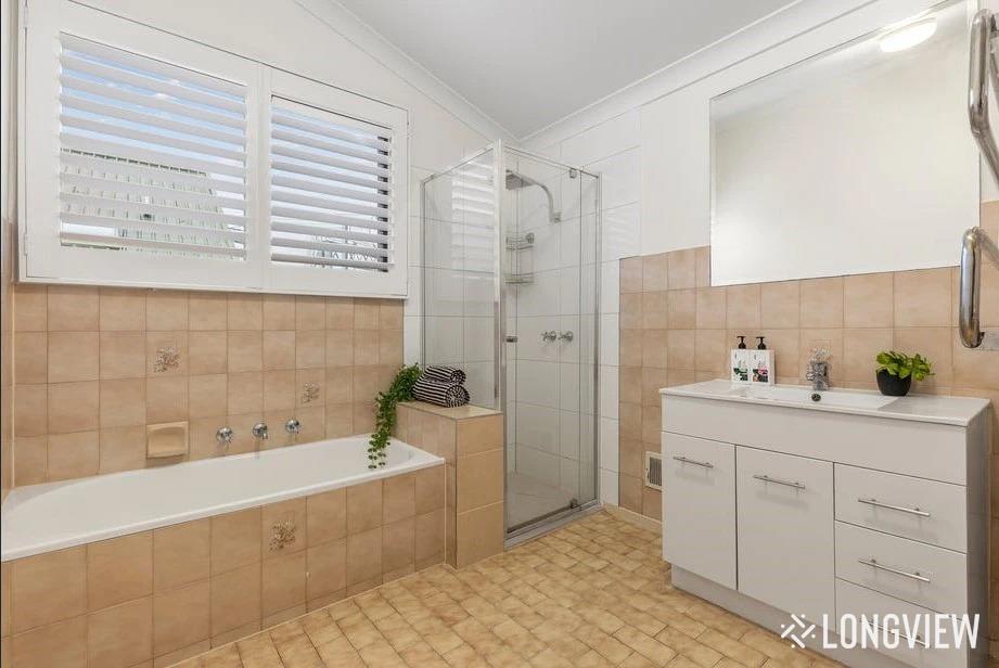 - Bathroom with sperate bath and vanity storage