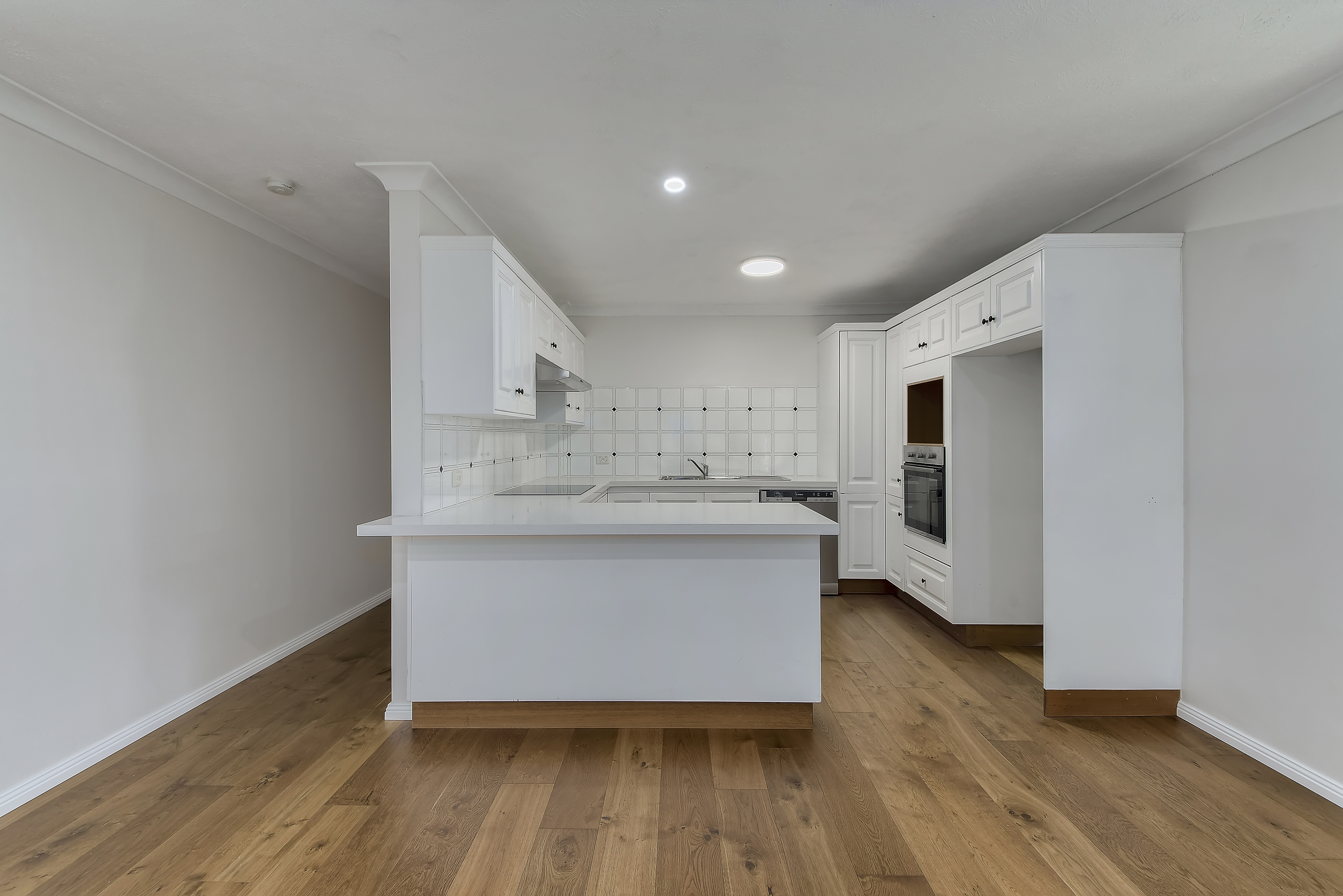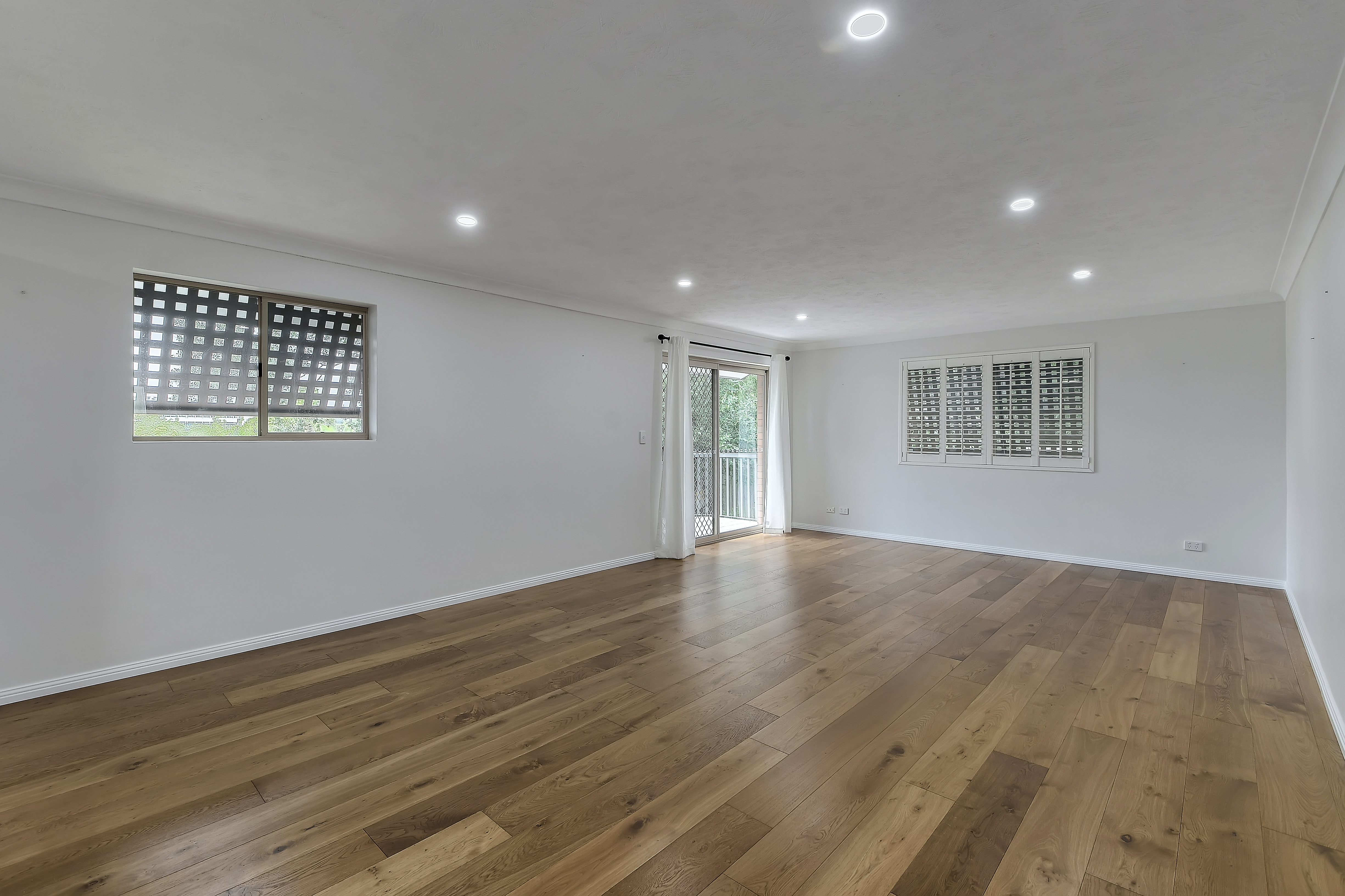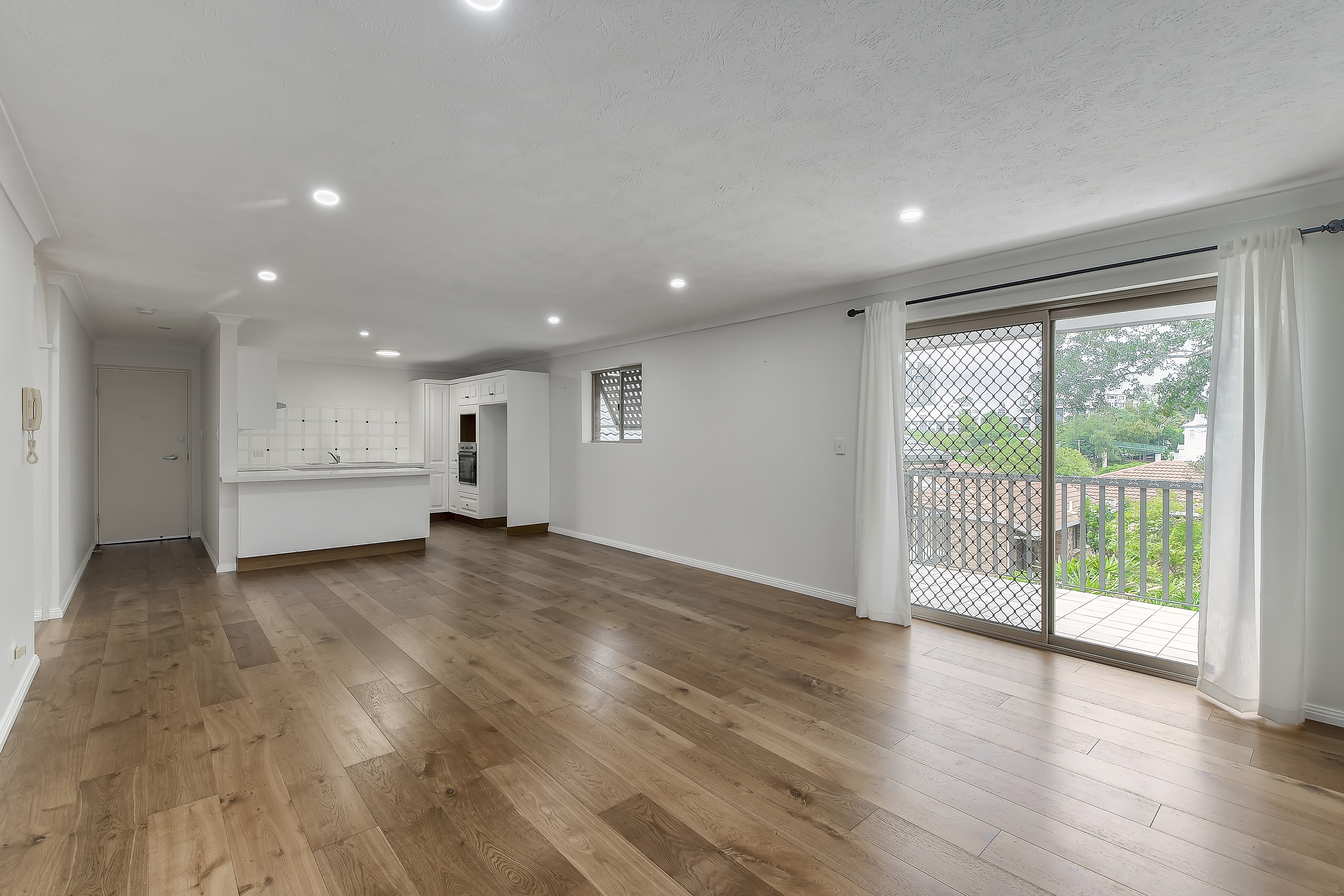- Large, open plan living area with hardwood floors which opens onto the rear balcony