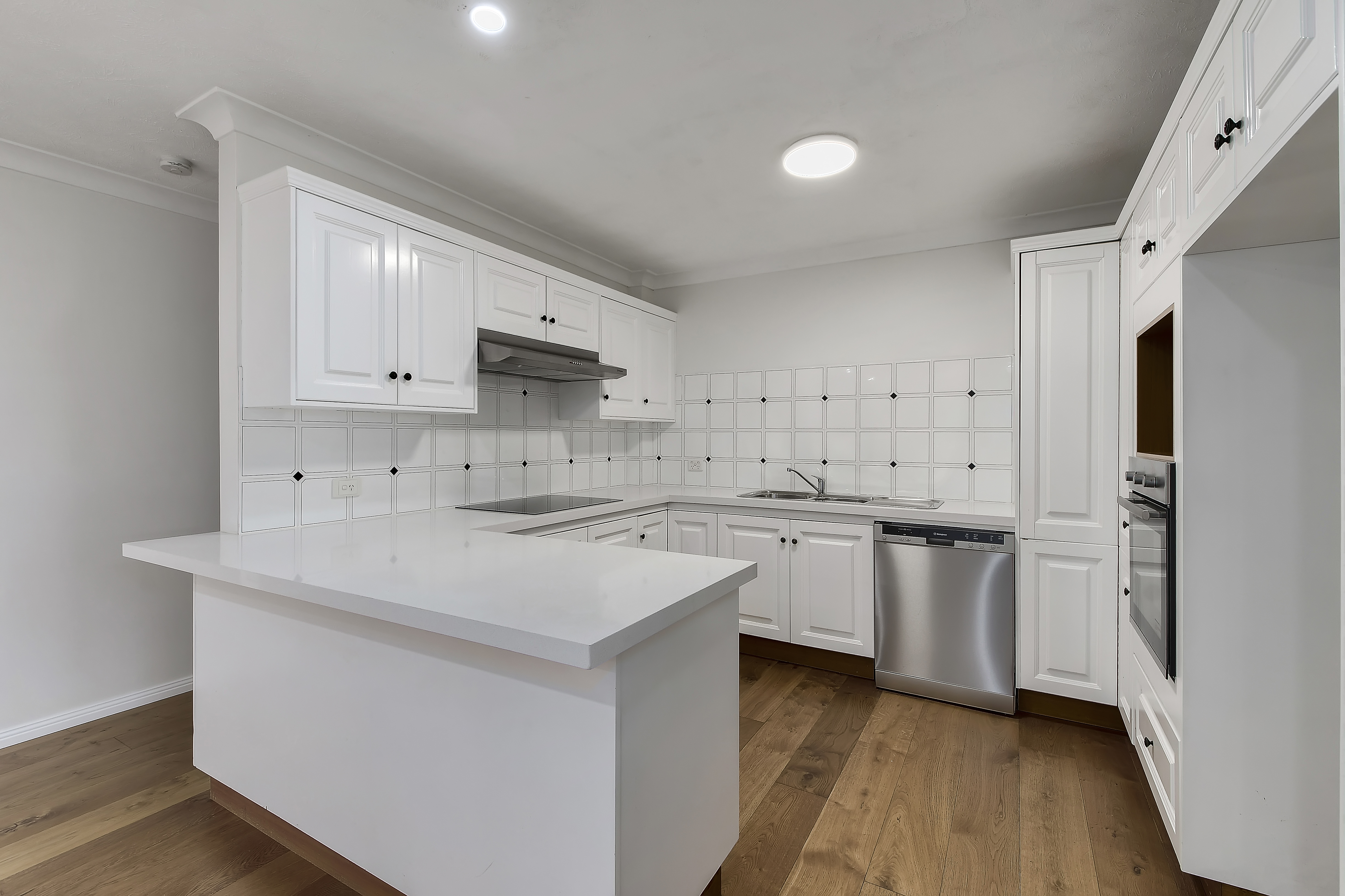 - Modern kitchen with stainless steel appliances including dishwasher & plenty of storage