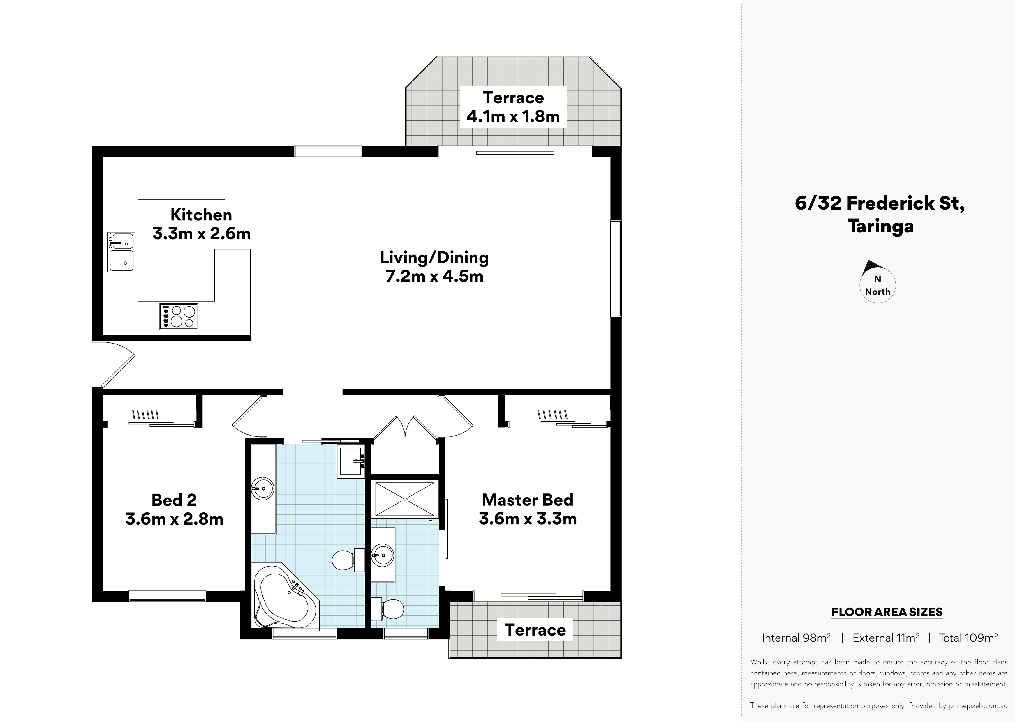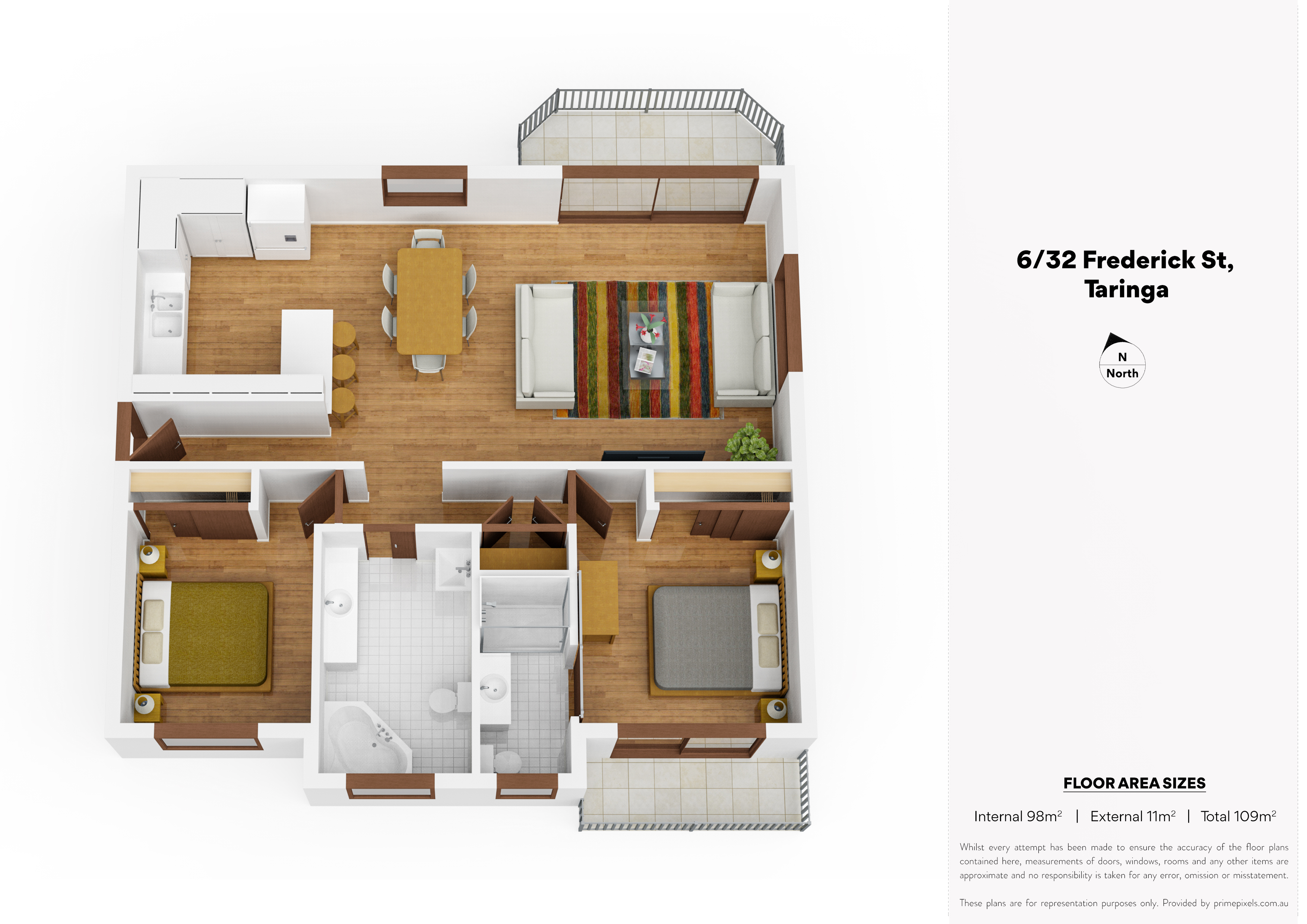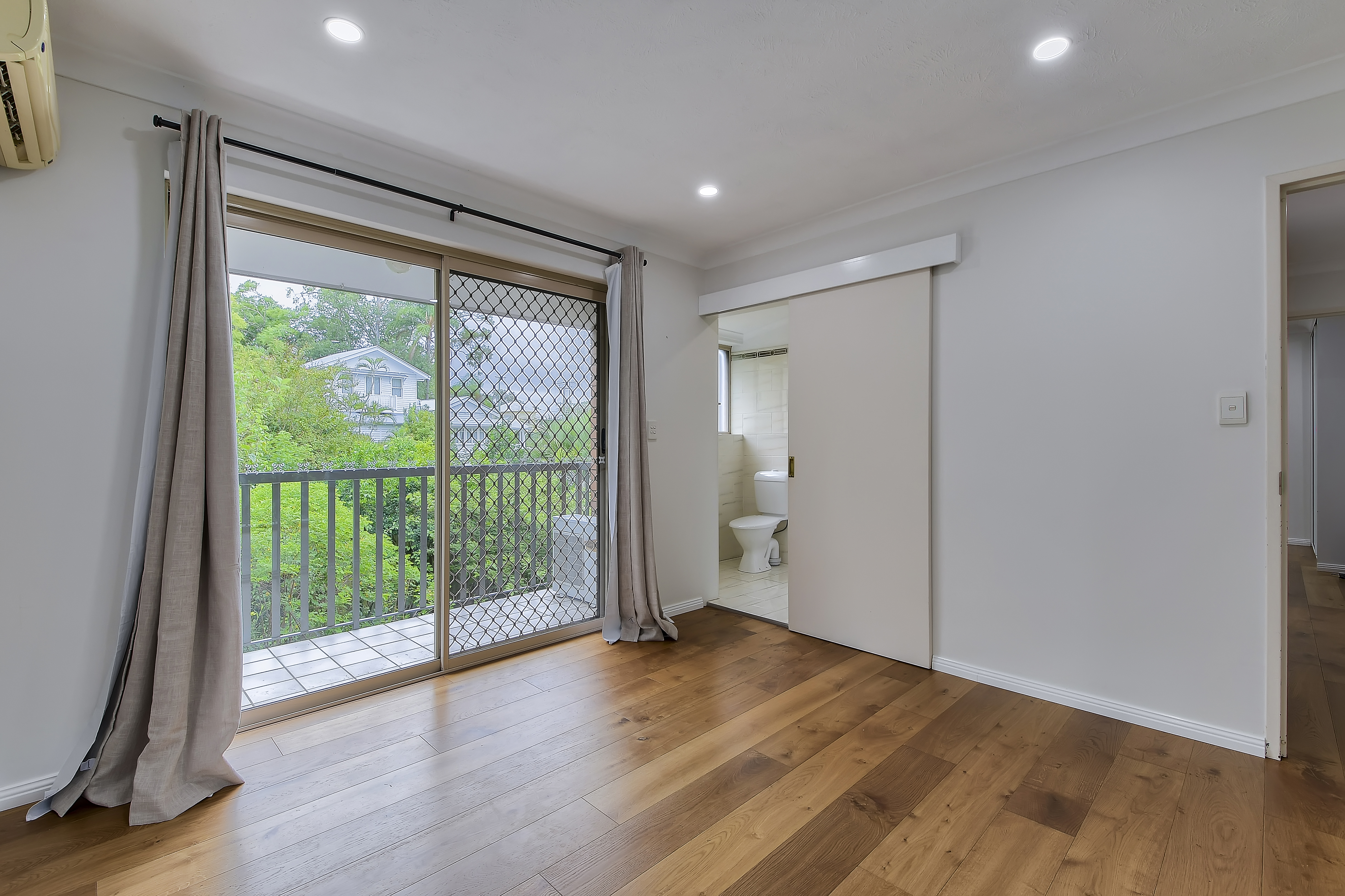 - Master bedroom is of a generous size and includes air conditioning, built in wardrobe, access onto the private balcony & ensuite