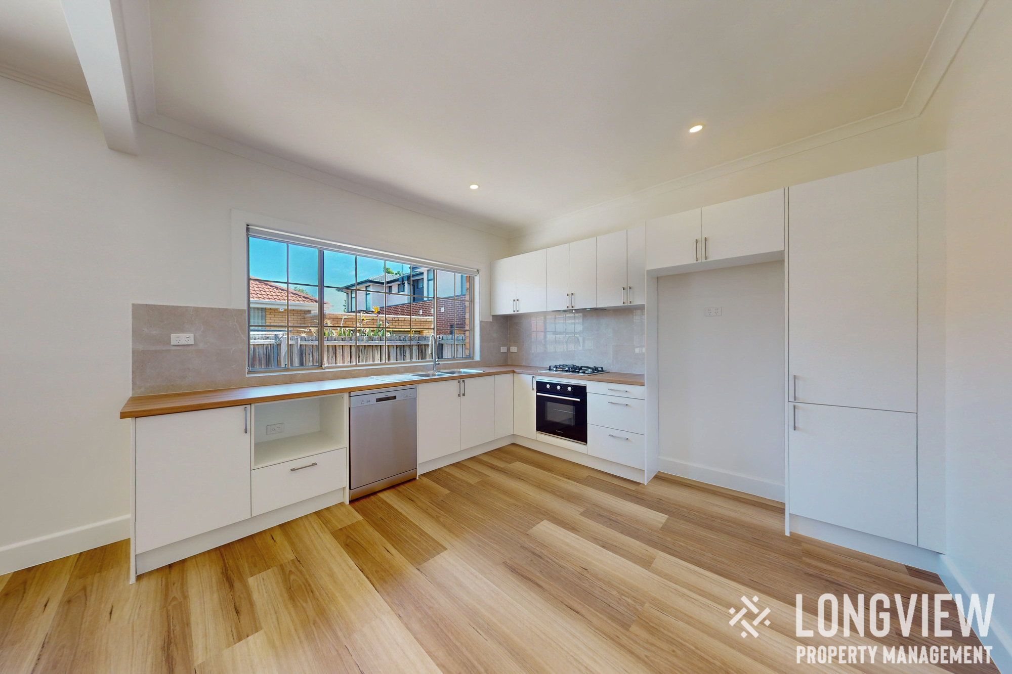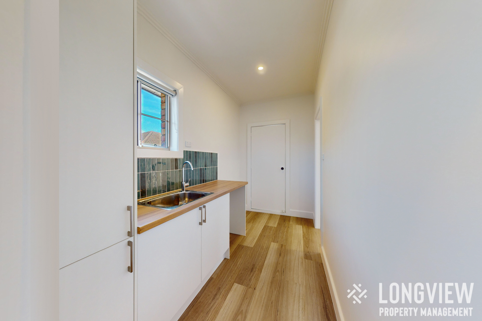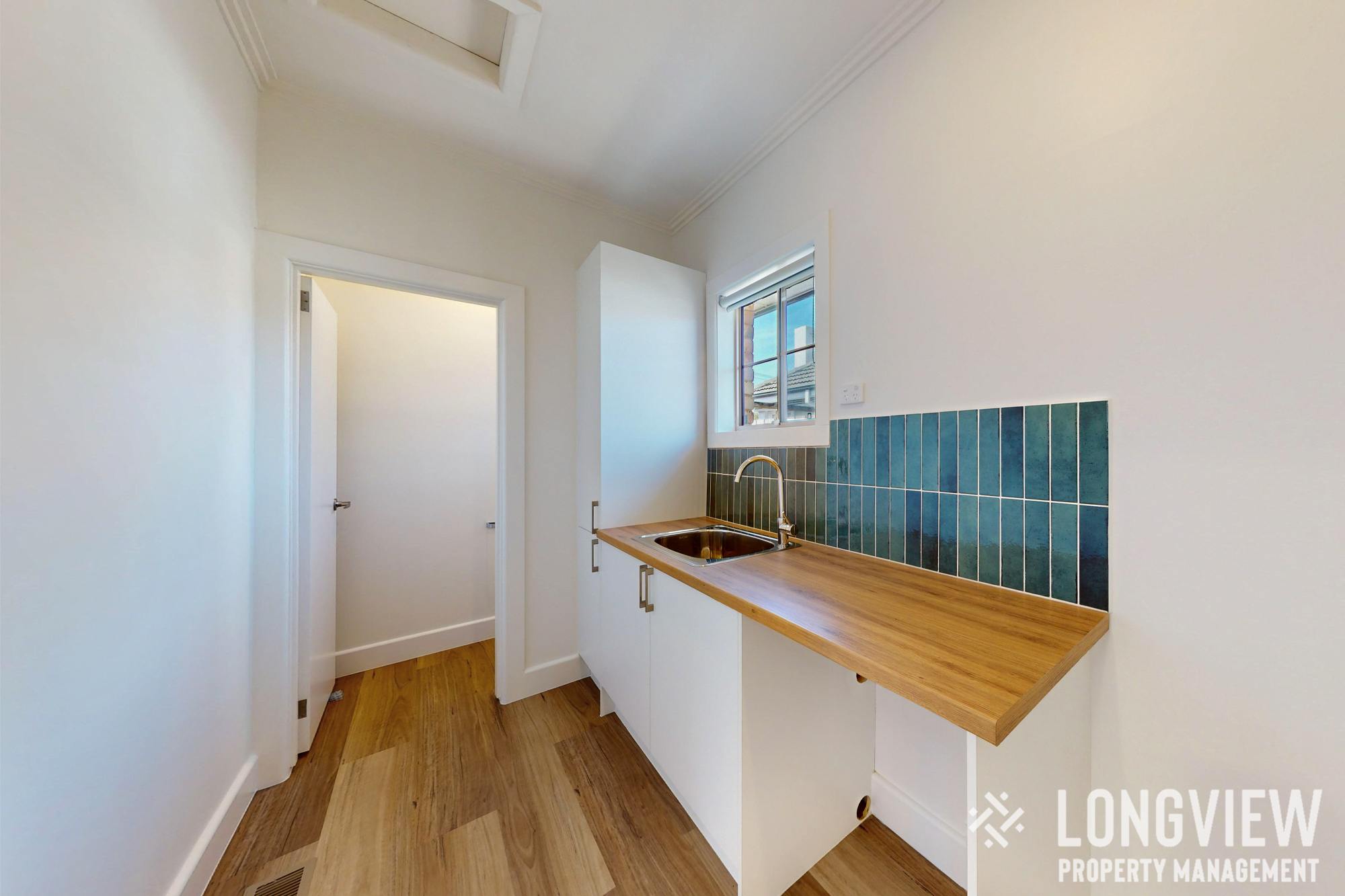 Functional Laundry: Includes under-bench washing machine space and additional storage.