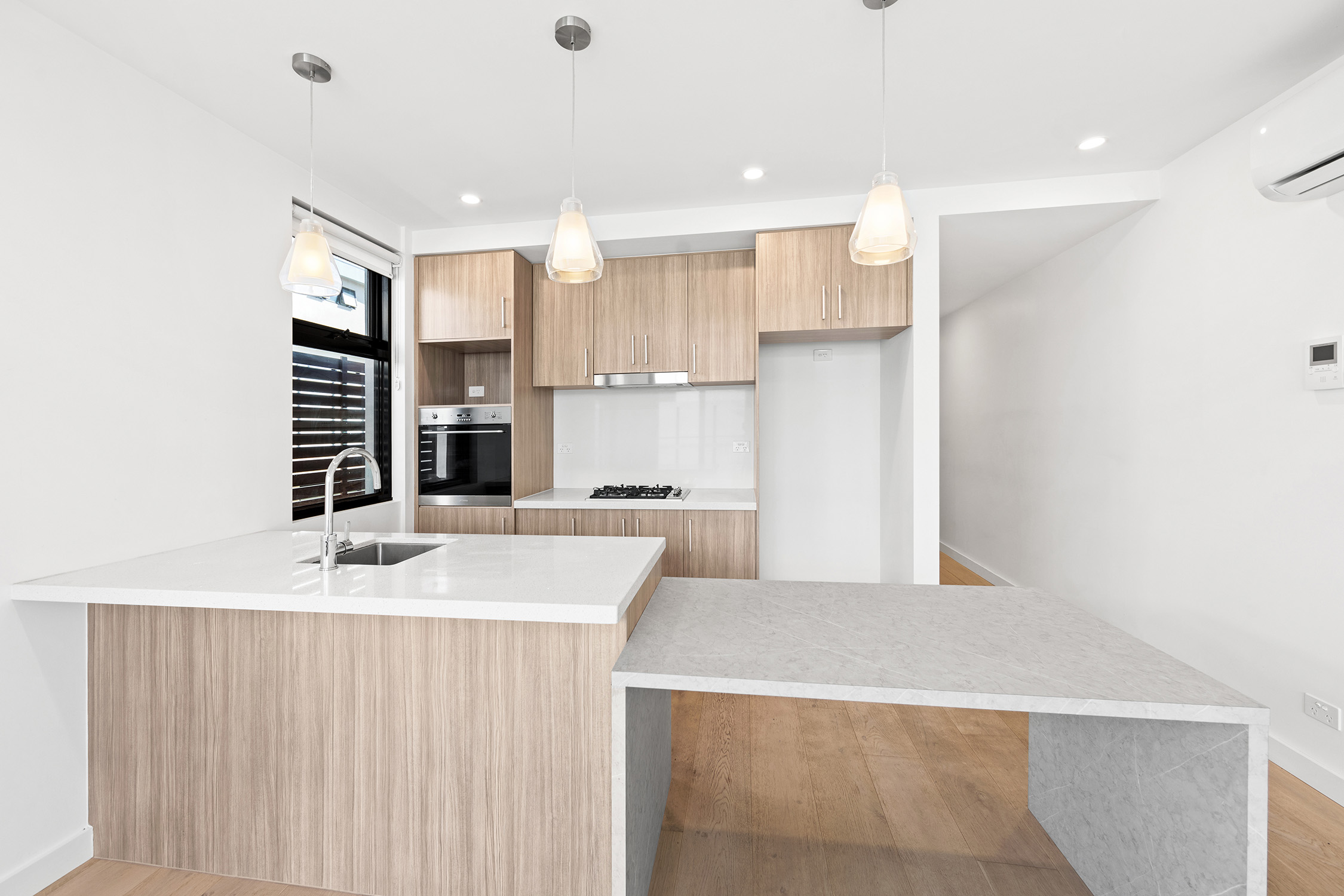 - Gourmet kitchen with gas cooktop, oven and dishwasher