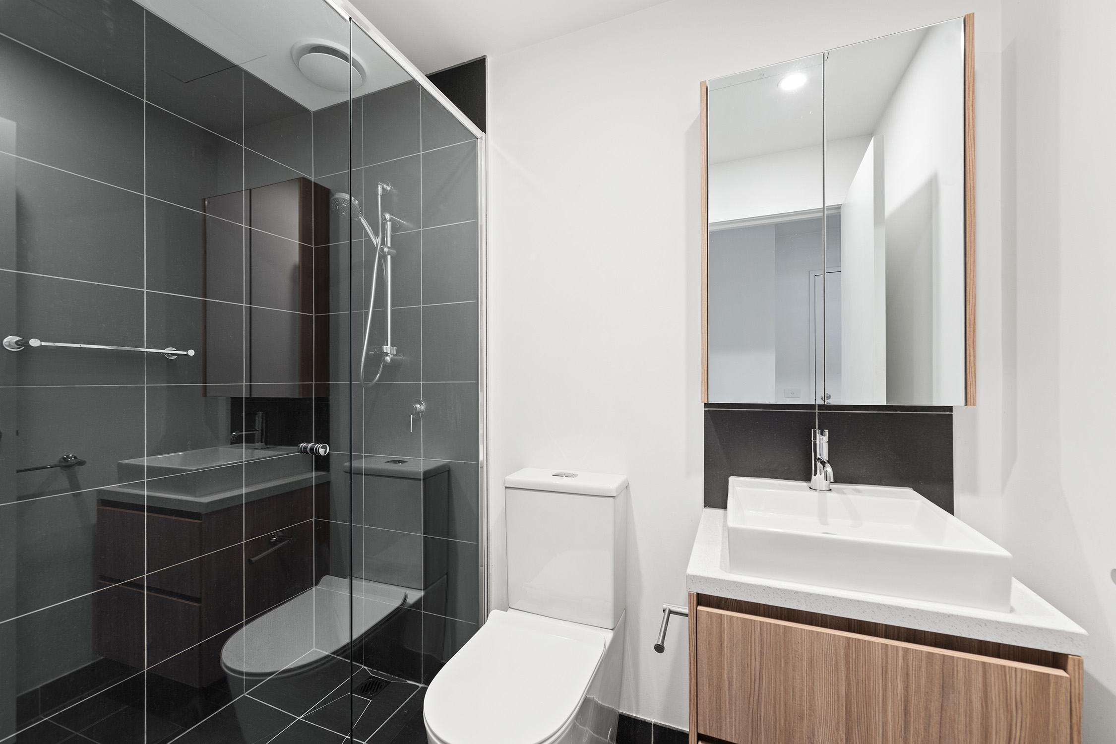 - Central bathroom with shower and toilet