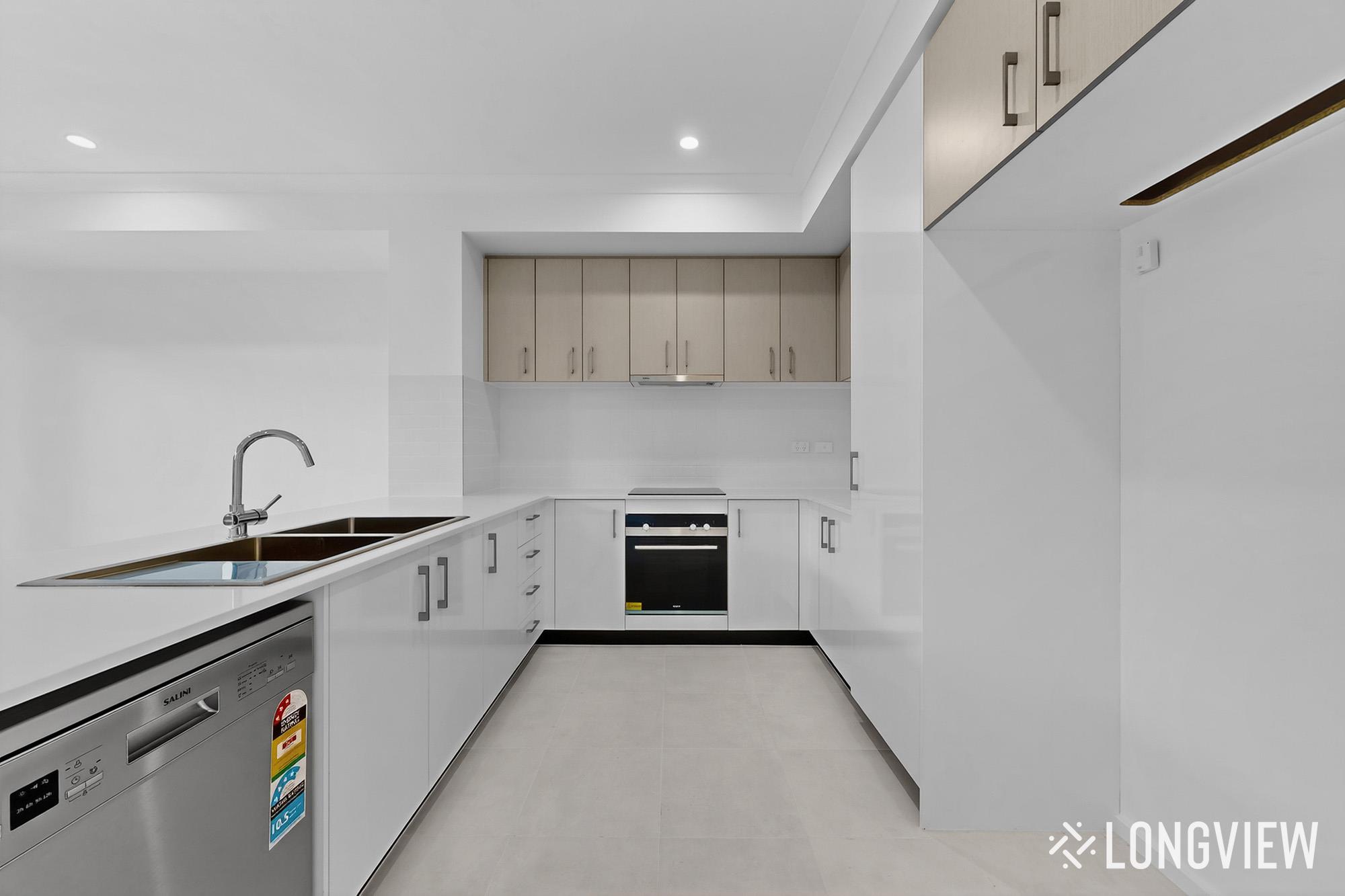 - Kitchen with electric cooking, double sink, pantry and dishwasher