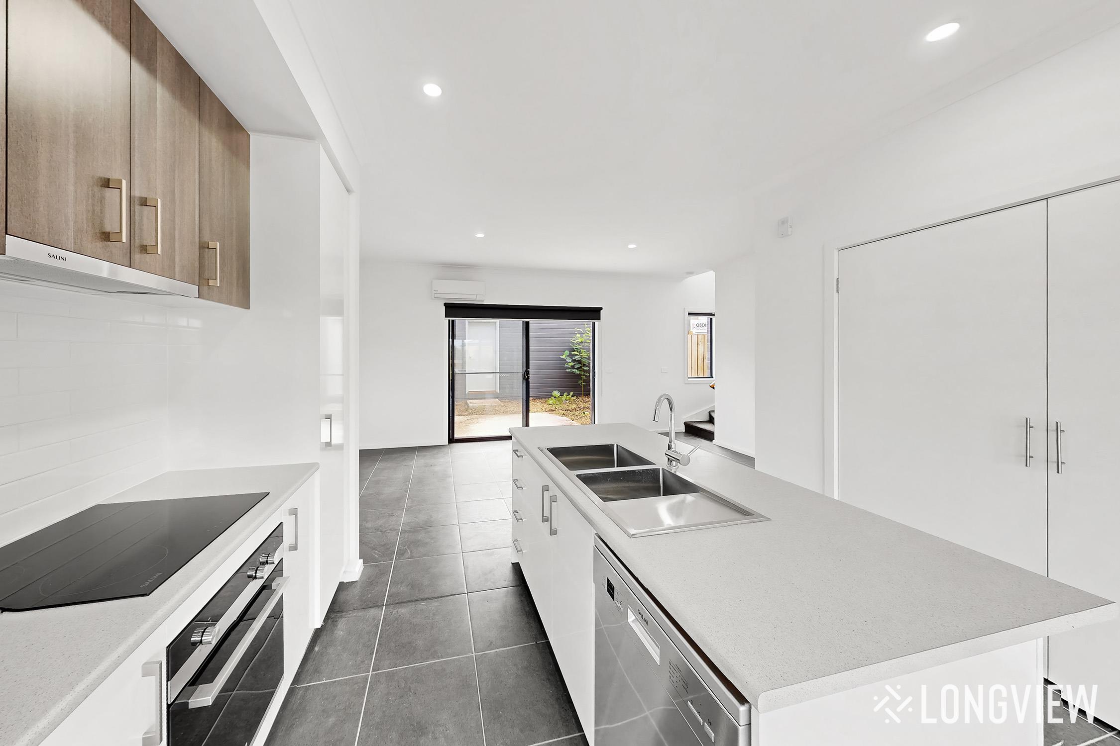 - Kitchen with electric cooking, double sink, large pantry and dishwasher