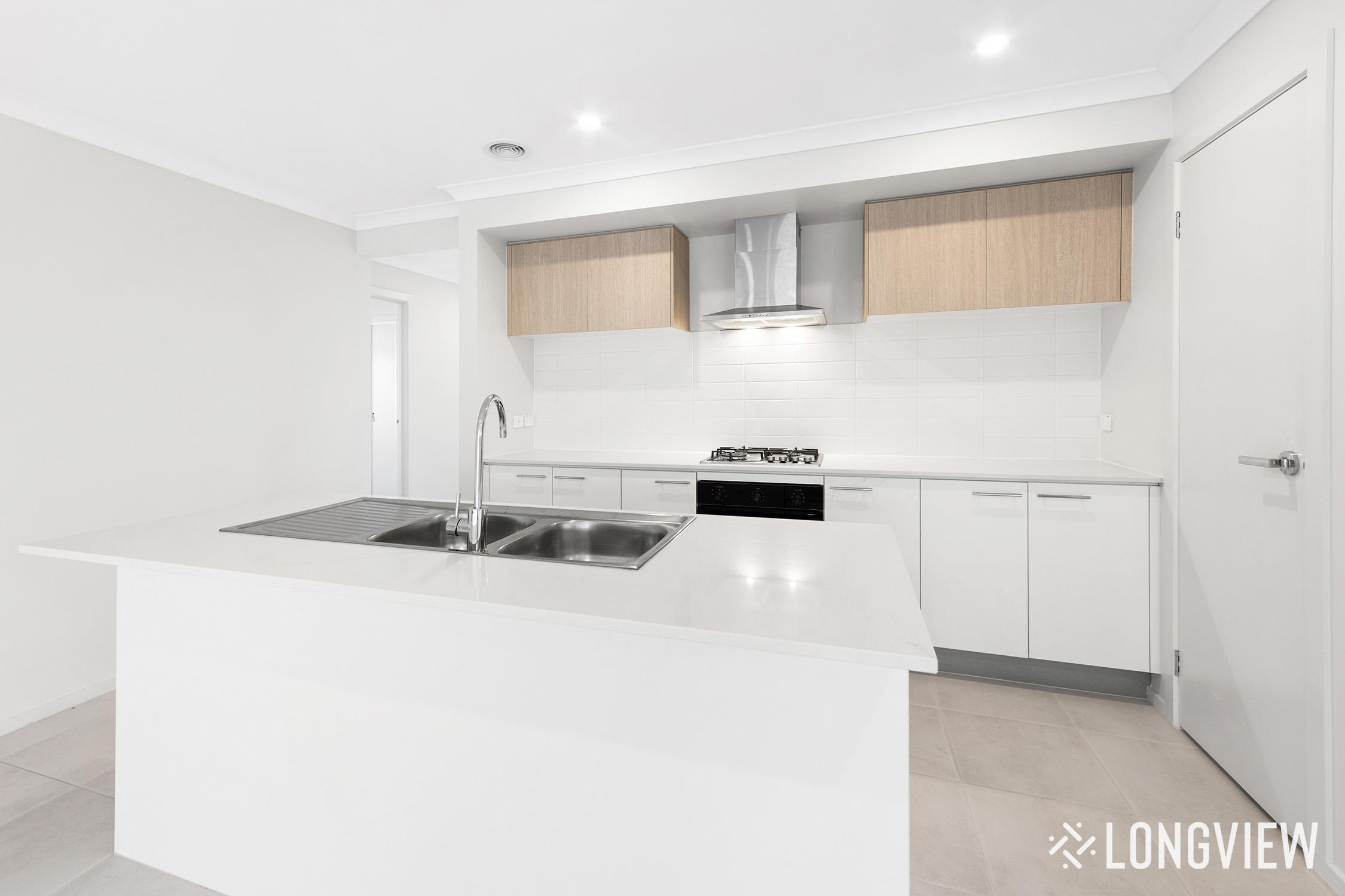 - Kitchen with island bench, walk-in pantry, gas cook-top, oven and dishwasher