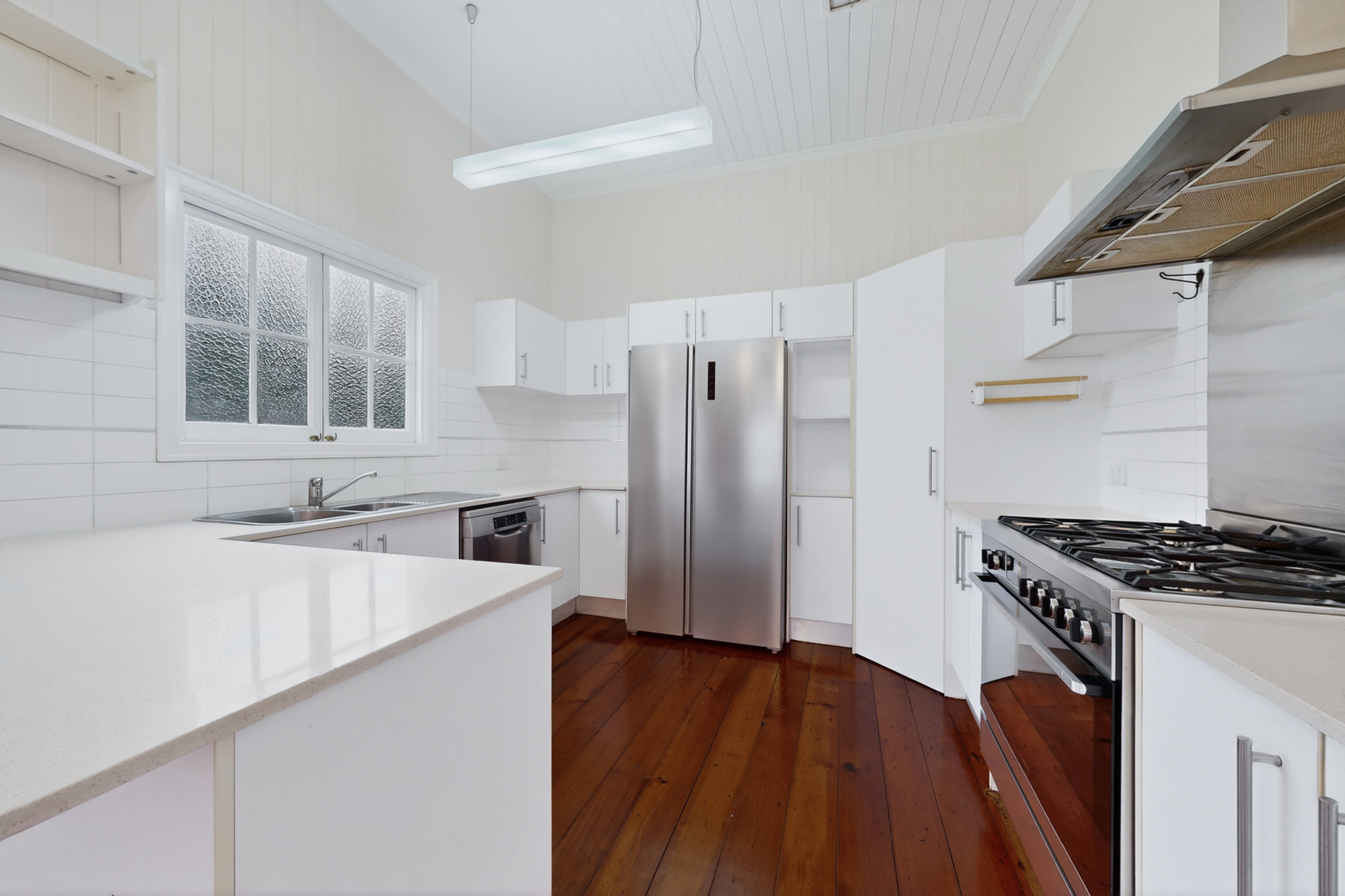 Well-equipped kitchen with gas cooking, dishwasher, and double fridge included