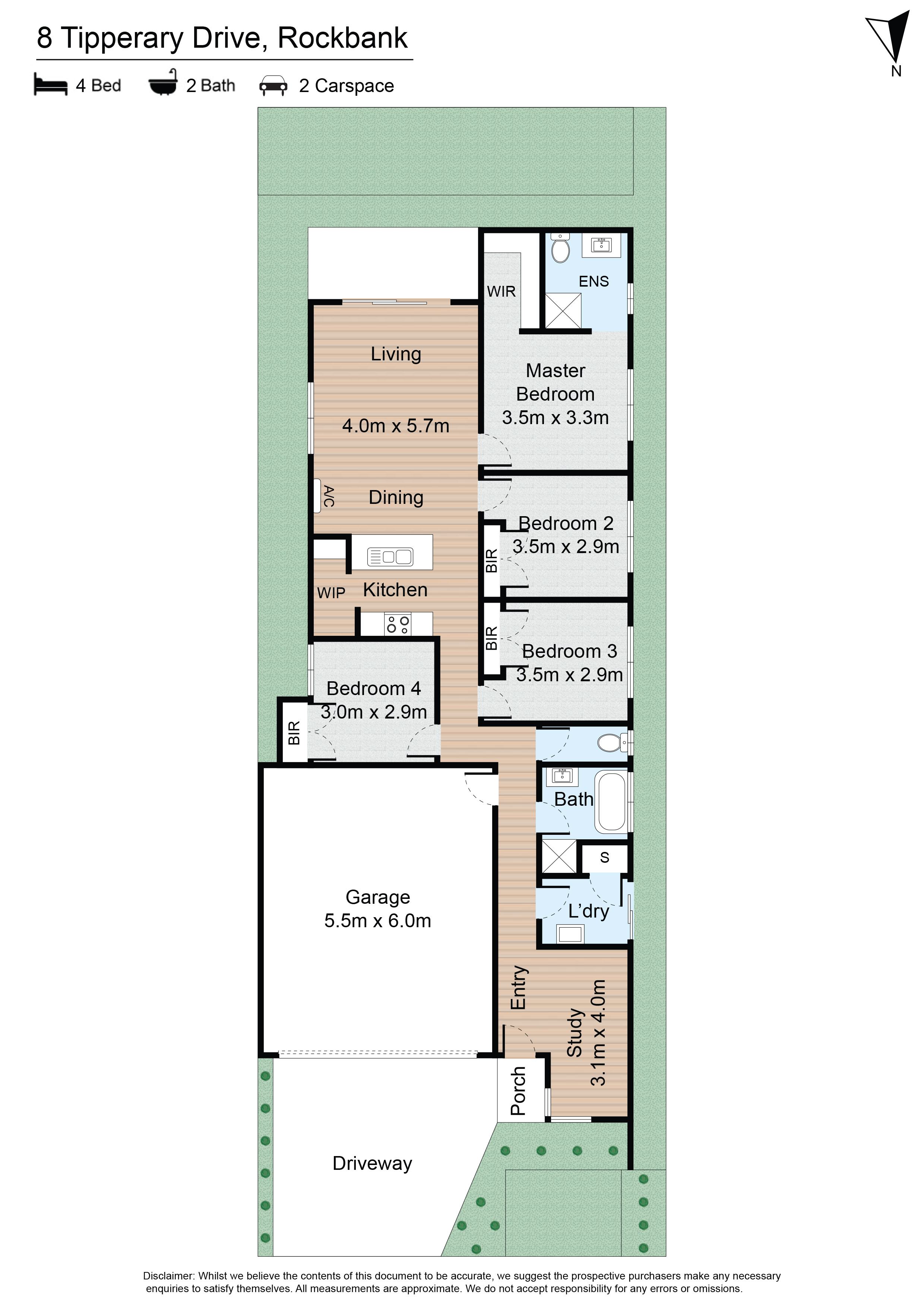 - 4 bedrooms with built-in robes, carpets, master with ensuite