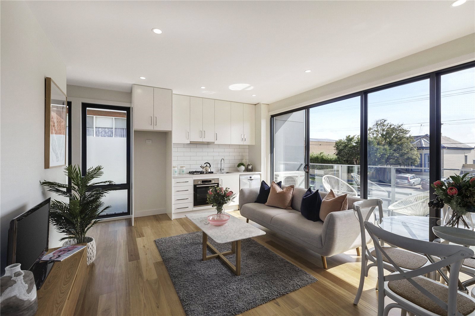 - Open plan living, with hardwood floors