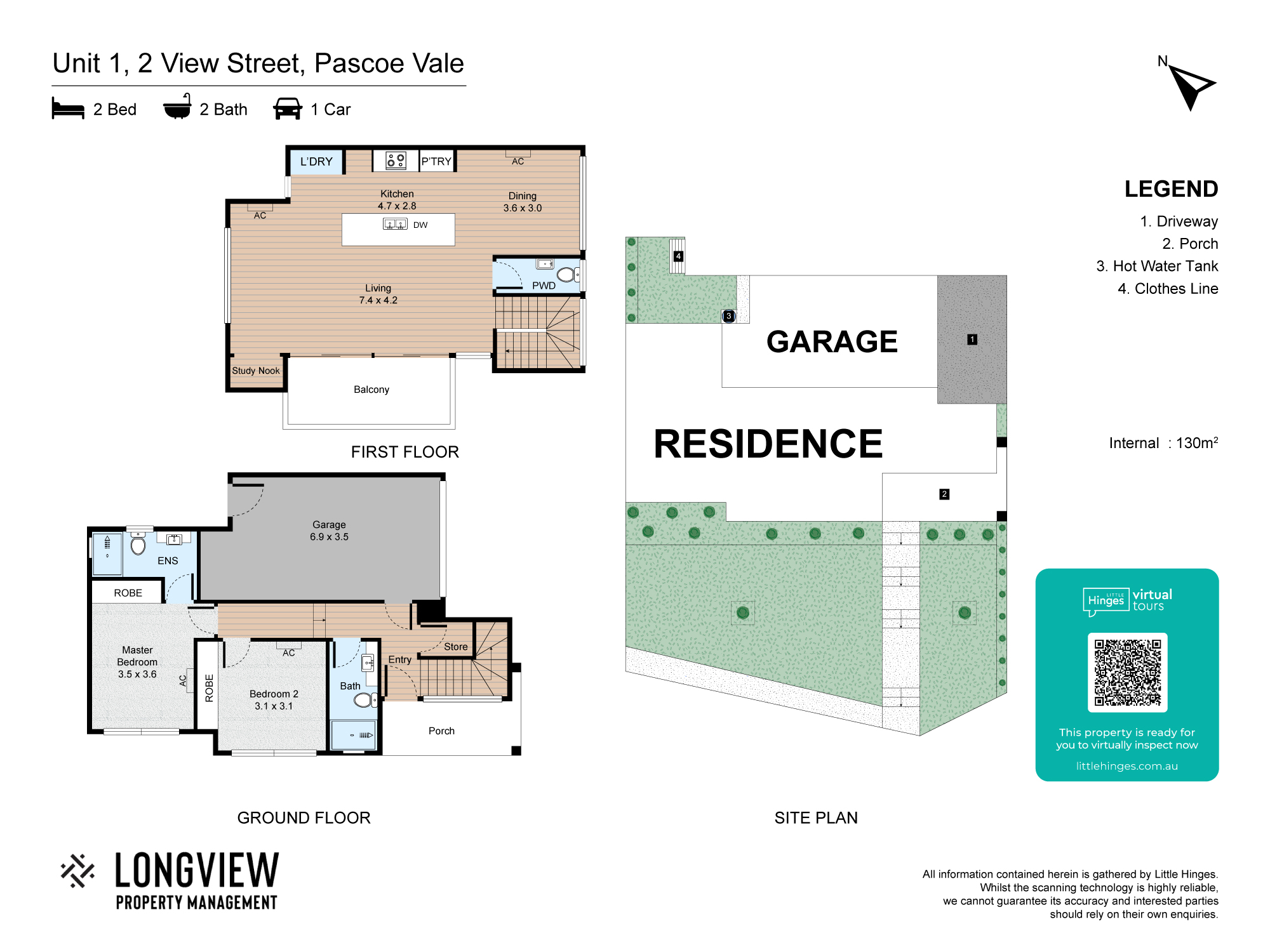 - Split system heating and cooling in living (x2) and both bedrooms